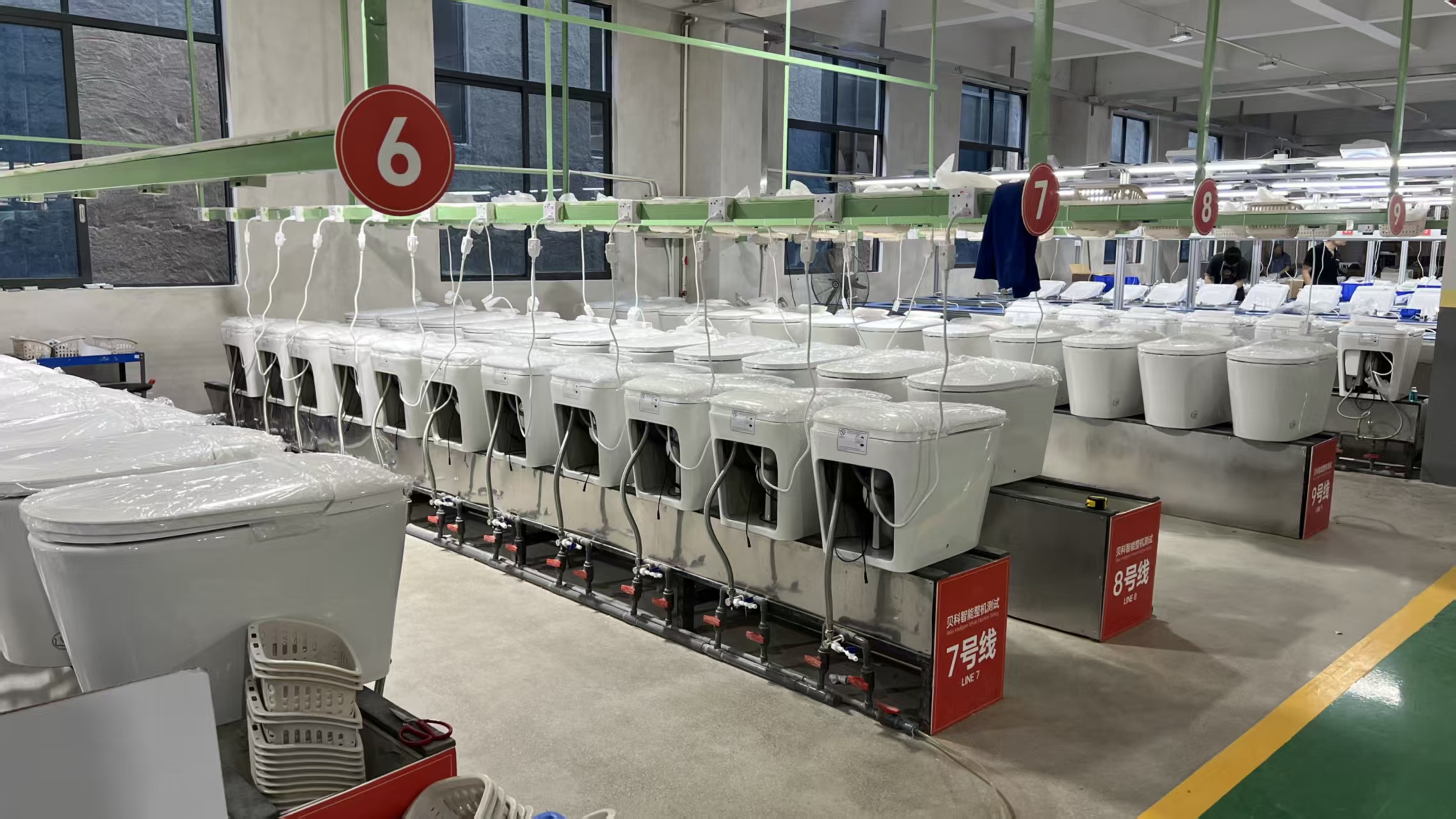 Cada unidade passa por mais de 32 pontos de verificação: teste de material (absorção de água da cerâmica, durabilidade do componente), teste funcional (autoclave, aquecimento do assento) e teste de segurança (à prova d'água, proteção contra vazamentos).